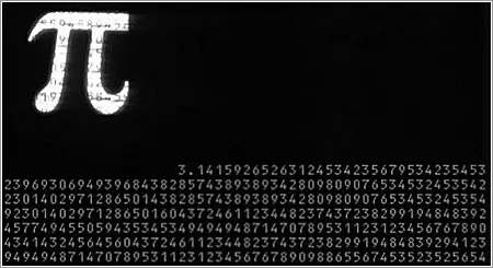 Es decir, que todos los dígitos que se ven en la película a partir del noveno decimal están mal. Además, varias secuencias se ven claramente copypasteadas (ver imagen completa del fotograma de Pi). Lo cual para una película que se llama Pi, y ya en la primera escena, es un grave error.