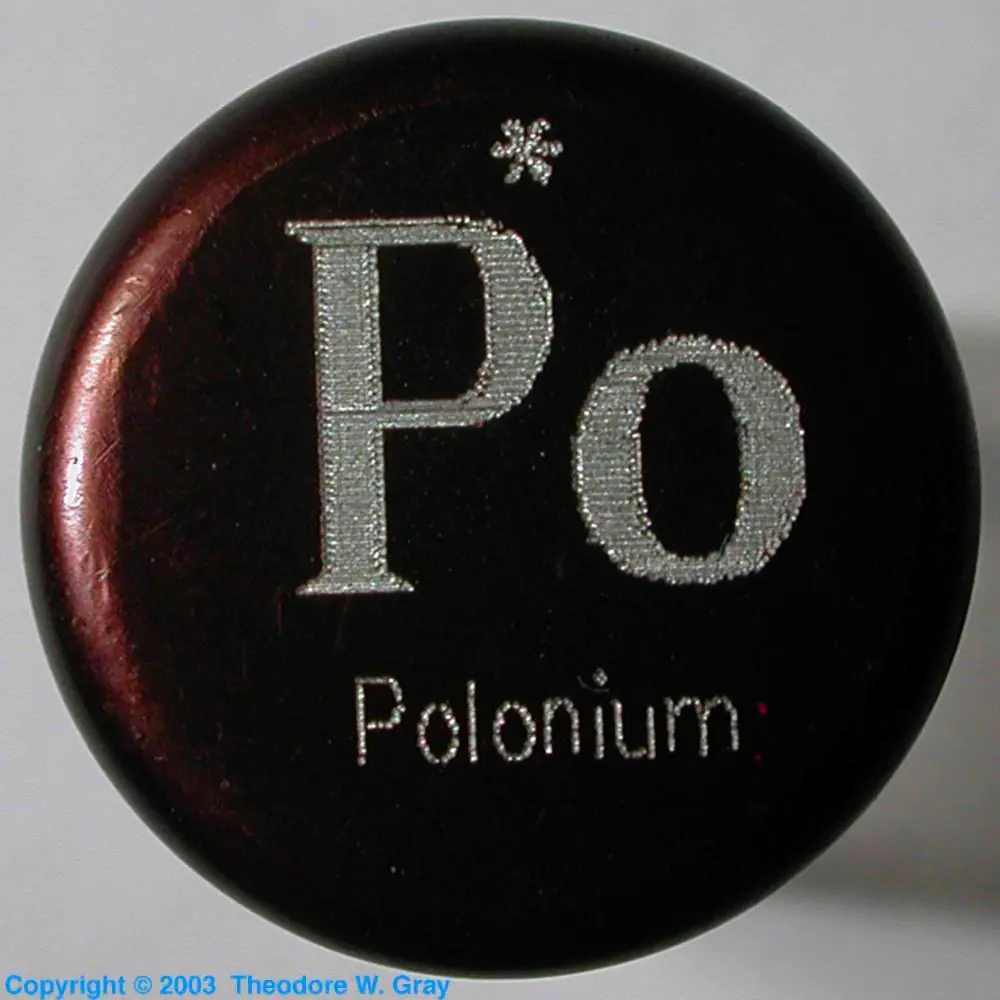 También conocido como Radio F, el polonio fue descubierto por Pierre Curie y Marie Curie-Skłodowska en 1898, y fue posteriormente renombrado en honor a la tierra natal de Marie Curie, Polonia. En aquella época, Polonia no era un país independiente y se encontraba bajo el dominio de Rusia, Prusia y Austria, y Marie albergaba la esperanza de que este nombramiento le añadiría notoriedad. Fue el primer elemento cuyo nombre derivaba de una controversia política.
