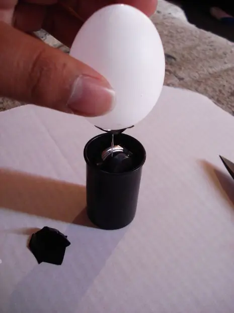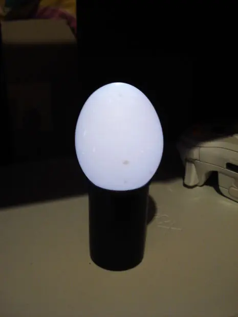 Una pequeña y simpática lámpara fabricada con un huevo, que contiene en su interior, un LED para su iluminación. Realmente es muy poca la luz que deja salir la capa del huevo, pero servirá como un bonito adorno.