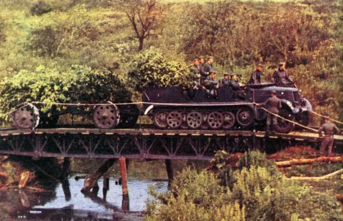 Sd.Kfz.9 tapado en follaje como solución provisoria.