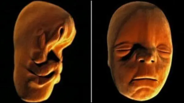 Si observamos con cuidado podemos ver que el rostro humano está formado por tres secciones principales que rotan y se unen durante el desarrollo fetal.