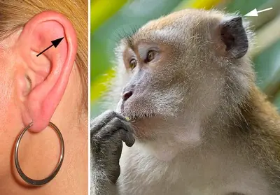 Un pequeño punto de piel plegada hacia la parte superior de cada oreja aparece ocasionalmente en los humanos modernos. Podría tratarse de un remanente de una formación más grande que ayudaba a centrarse en los sonidos distantes. .