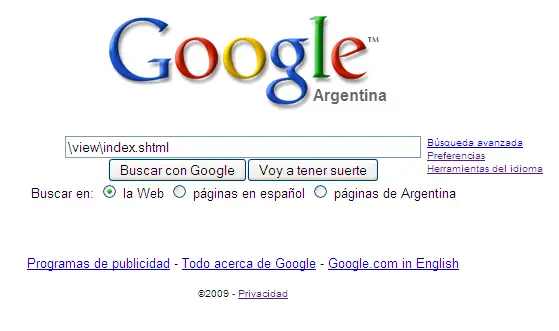 2) Copiá y pegá este texto en donde insertás lo que querés buscar: \view\index.shtml.