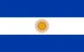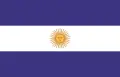 Bandera de la marina de Argentina, oficializada el 14 de marzo de 1818. La de los buques mercantes era la misma, pero sin el Sol. En 1819 tuvo durante unos meses un tono azul en lugar del celeste, que luego fue restablecido. Se dejó de usar hacia 1820.