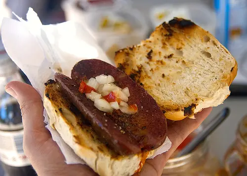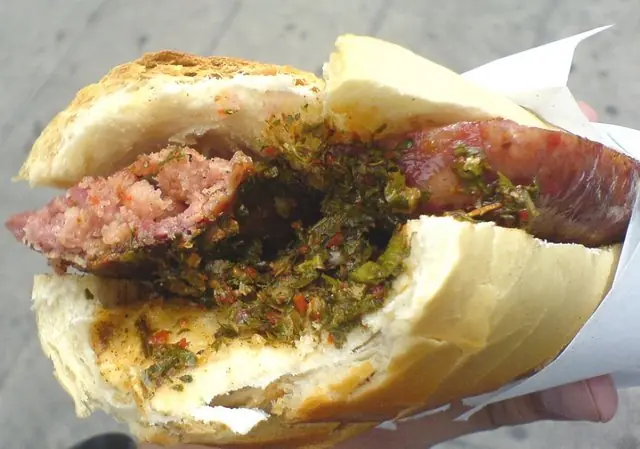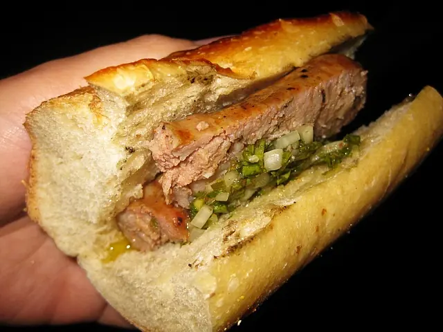 Choripán (acrónimo de chori-zo y pan, a veces abreviado chori) es un tipo de sándwich 1 2 asado a la parrilla, típico de la gastronomía de Argentina3 y de países vecinos como Uruguay y Chile.4 5 Se prepara generalmente con pan francés y chorizo asado a la parrilla. El chorizo es el denominado "chorizo parrillero", típico del área rioplatense, y que, a diferencia del de otras zonas, se realiza sin desecar ni ahumar, usándose casi "fresco". Suele condimentarse con alguna salsa como el chimichurri (aderezo típico argentino elaborado con perejil, ají y orégano)6 7 o el pebre. Su popularidad alcanza a incluirle entre uno de los diez platillos favoritos de Argentina.8 Esta afición hace que su preparación haya sido divulgada a otras gastronomías vecinas de América Latina, tal es el caso de: Uruguay,9 Chile y también popular en Bolivia, Colombia, Paraguay, Perú y Cuba.