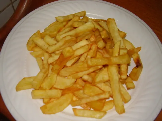 Las papas / patatas fritas son aquellas que se preparan cortándose en rodajas o en forma de palitos y friéndose en aceite caliente hasta que queden doradas, retirándose escurridas del aceite, y salándose.
