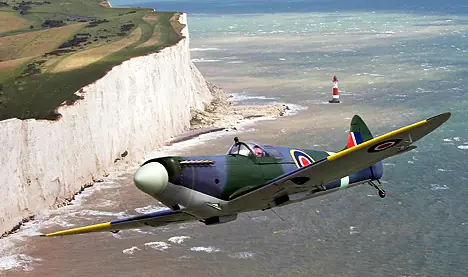 El Supermarine Spitfire fue un caza monoplaza británico desarrollado y producido para la Segunda Guerra Mundial y que, después de la Batalla de Inglaterra, pasó a ser el caballo de batalla de la RAF.