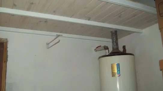 Te dejo una foto desde abajo, ya terminado, con el detalle de la salida de gases del termo.