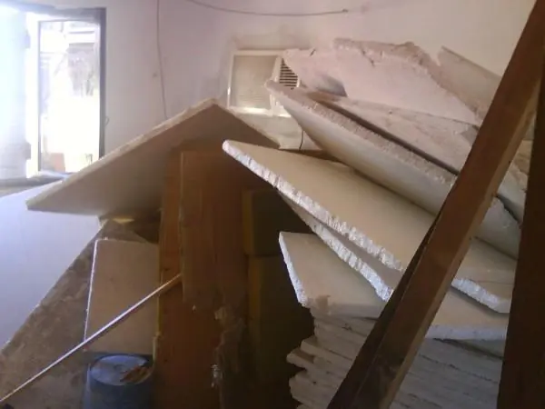 Ademas pudimos rescatar abundantes placas de telgopor, si ya se, tuvimos mucha suerte, pero igual estos materiales no son muy caros, yo recomiendo telgopor antes que Maple de huevos, por su propiedad termica, no es tan bueno acusticamente pero mantiene el ambiente, mas si la sala esta climatizada o es pequeña. Los maples tiene la forma perfecta, pero el material no sirve de nada.
