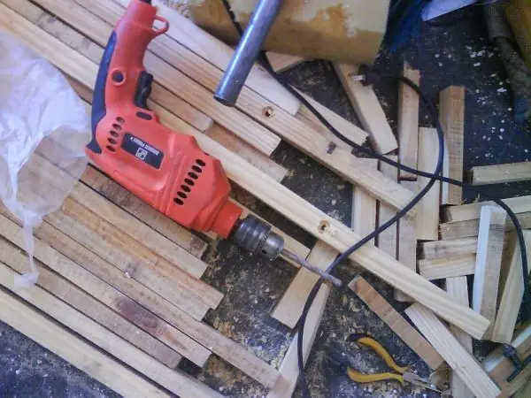 las cortabamos horizontalmente, hasta la mitad, y las atabamos con alambre, pusimos clavos sobre los tirantes y pasamos el atado por ahí, prolijamente y escondiendo las puntas (ojos los Ojos)