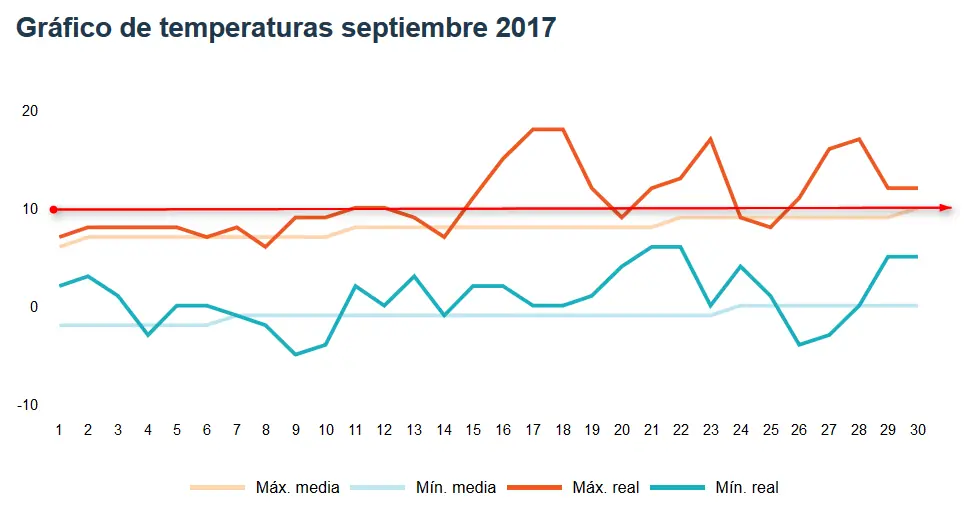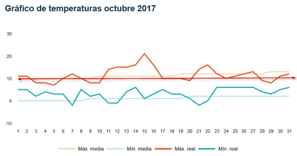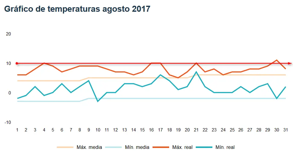 resulta que en los dos meses y medio, la medía de la temperatura máxima no supera los 10°C, mientras que datos puntuales, de pocas horas, en agosto sólo la supera 1 día y en septiembre antes del sólo 10 días y en octubre de 9 días. Esto es un total de 20 días, que so sólo unas pocas horas, por que, como mucho equivaldrían a dos días a 25°C.... o menos