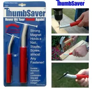 Y este invento seguro que ha salido de una. Se llama (en español) “el salva pulgares” y su misión es clara, salvarte los pulgares de martilleartelos al poner un clavo