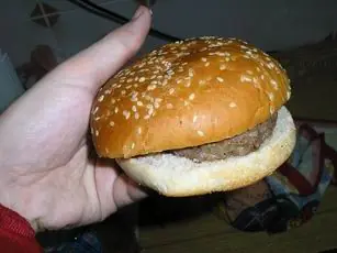 Todavía no había almorzado y ya me hacía ruido la tripa. Así que busque una casa de comidas rapidas obvio mcdonalds pero solo encontre un pumper nicc y pedí la una hamburguesa completa. En cuanto me lo sirvieron supe que había cometido un error: Miren lo que me sirven.