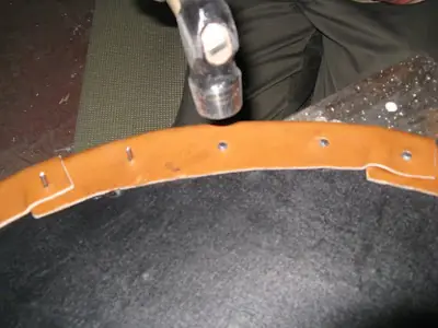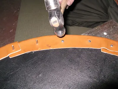 Ojo, si estás clavando el cuero sin haber cosido antes, y el relleno es de trozos sueltos, asegúrate de colocar las tachuelas bastante juntas para que el relleno no se escape entre ellas.