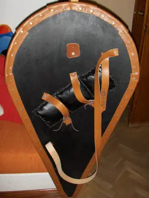 El lector atento habrá visto en la foto anterior un extraño trozo de cuero remachado en mitad del escudo ¿verdad? ¿Y qué utilidad puede tener?