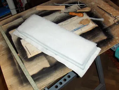 Yo me decidí por acolchar con guata (más que nada porque no se apelmaza) y por coser una especie de almohadón independiente del escudo (con tela por el lado de dentro, que el cuero es más bien caro)