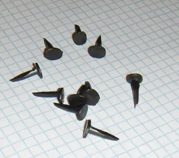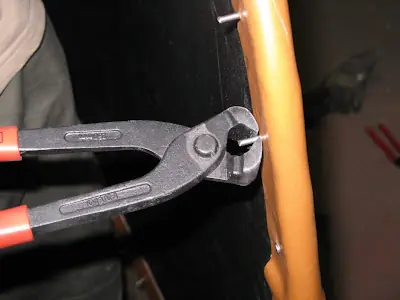 Paso 1 (er brinkindans): cortar el remache dejando el metal suficiente para que al aplastarlo forme un domo adecuado.