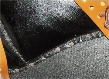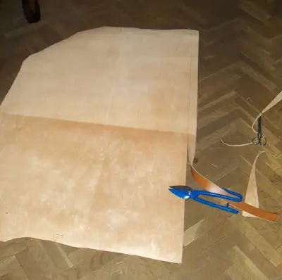 Como al remachar tampoco vas a poder poner cientos de remaches, no puedes fijar los bordes en muchos puntos cercanos, así que tienes que usar piezas de cuero cortas superpuestas para que no tengan que curvarse demasiado.