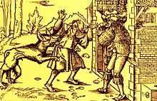 Un hombre-lobo ataca a un hombre mientras su compañero presencia la acción horrorizado sin poder ayudar. Es un grabado del siglo XVI, procedente de Die Emeis, de Johann Geiler de Kaiserberg.