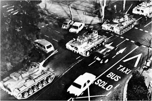 Mientras en la ciudad de Valencia, milan del bosch, sacaba los tanques a la calle, una manera de apoyar a Tejero desde otra zona de España....