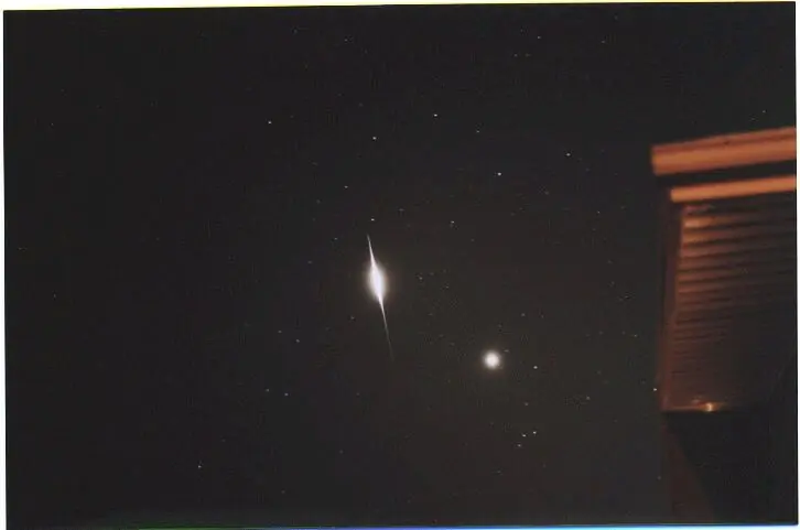 Muy por encima de su cabeza, en medio de la oscuridad, una brillante luz aparece de pronto. Durante 5 a 10 segundos, su brillo supera incluso al de las estrellas más brillantes del cielo, imitando a una supernova, quizás incluso produciendo tenues sombras alrededor de sus pies. El silencio se rompe con sus gritos de emoción.