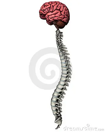 Bueno, pues el cerebro manda todos estos mensajes a todo tu cuerpo. Pero ¿cómo? Por medio de los nervios. Los nervios son grupos de hilos finos que transportan mensajes por todo el cuerpo, de forma muy parecida a como las líneas telefónicas transportan las conversaciones. El nombre que recibe el sistema completo de nervios es sistema nervioso y recorre todo el cuerpo al igual que lo hacen las líneas telefónicas por toda la ciudad. Algunos de estos mensajes van directos al gran jefe, pero muchos otros pasan por un grupo largo de nervios, llamado médula espinal. La médula espinal pasa por el interior de tu columna. Tócate la espalda, los bultos que sientes hacia arriba y abajo en el medio de la espalda forman la columna vertebral.