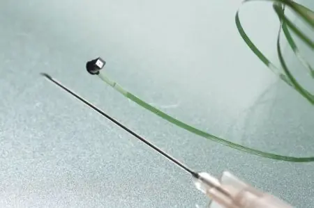 Comparándola con la aguja, nos damos cuenta de que es una cámara realmente pequeña, y de hecho ocupa un área de aproximadamente 1 milímetro cúbico.
