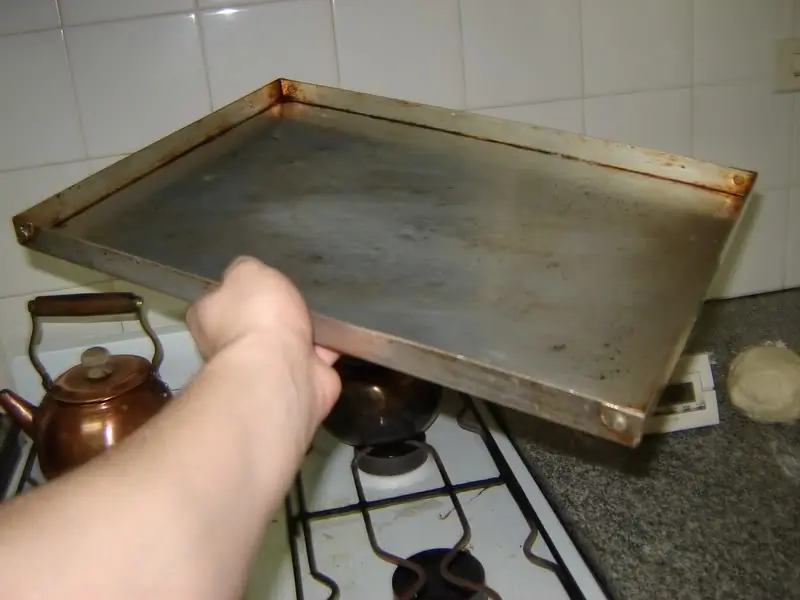 Para cocinar los bizcochitos, lo mejor sería una bandeja para horno, o en su defecto, una fuente grande, o una pizzera, etc