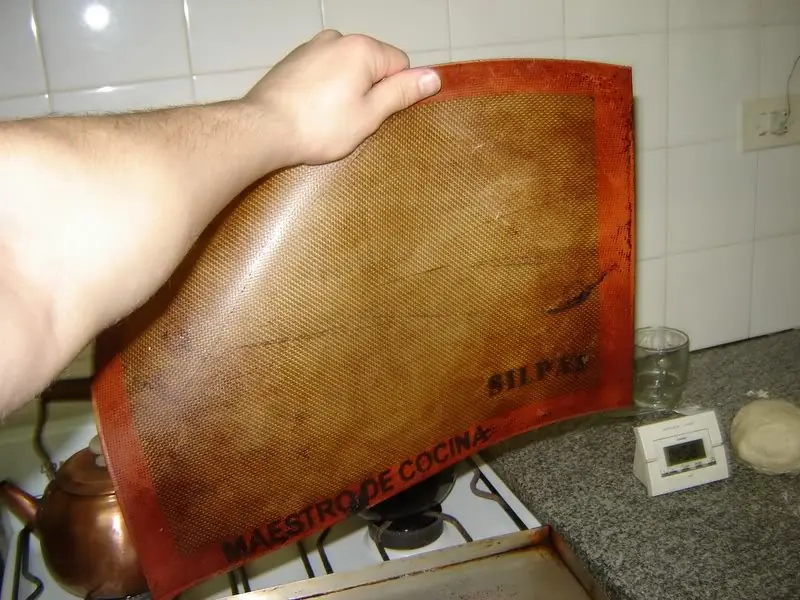 Y si te interesa cocinar y armarte de a poco con las herramientas de cocina, INDISPENSABLE tener un Silpat. Un silpat es como un tejido bañado en una goma rara que soporta altas temperaturas. Hace que no necesites ponerle nada a las fuentes para que la comida no se pegue. El mio ya esta viejito...