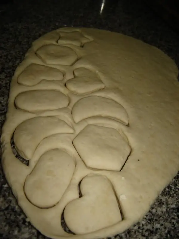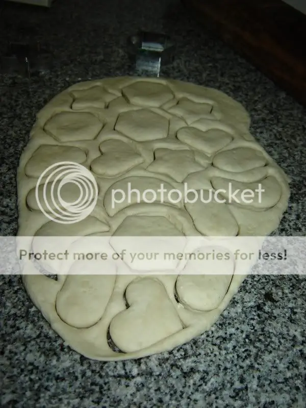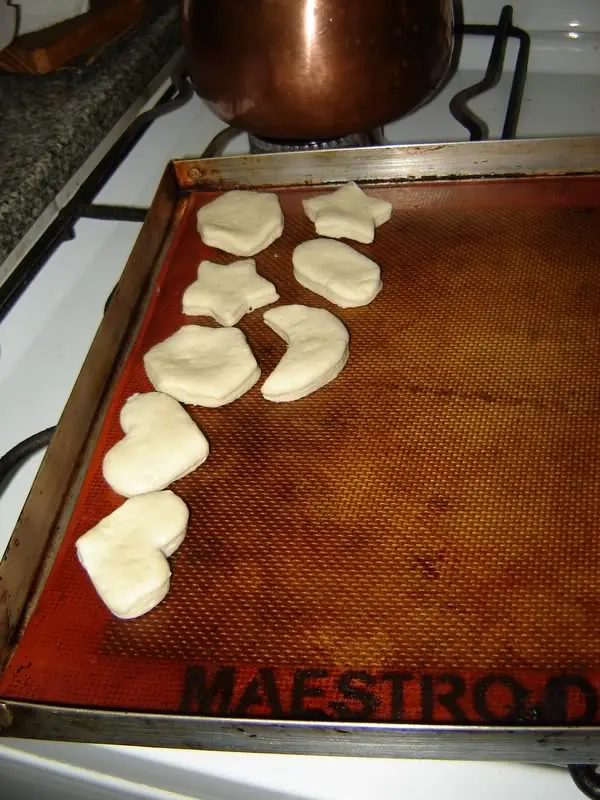 Para cortar los bizcochitos, nada como unas formitas felices, o en su defecto, una copita de champagne para cortar la masa.