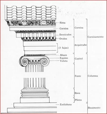 de inspiracion oriental, se exibe mas elegante y delicado en contraste con la sobriedad del dorico, tambien utiliza base en sus columnas.