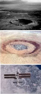 dijo:Diversos cráteres de impacto en la superficie terrestre, testimonio de episodios violentos e instantáneos desde el punto de vista geológico.
