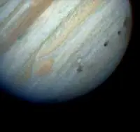 dijo:Imagen tomada por el telescopio Espacial Hubble de los impactos de trozos del cometa Shoemaker -Levy 9 contra la atmósfera de Júpiter.