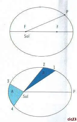 II.- en su movimiento orbital, la línea que une al planeta con el centro del Sol barre áreas iguales en tiempos iguales
