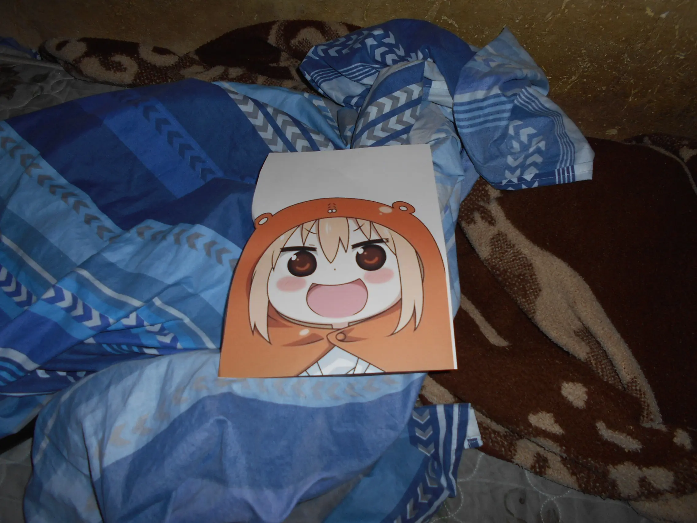 En casi todas las fotos (debido al flash de la cámara digital) La capa de Umaru sale roja, pero acá ven que es naranja: