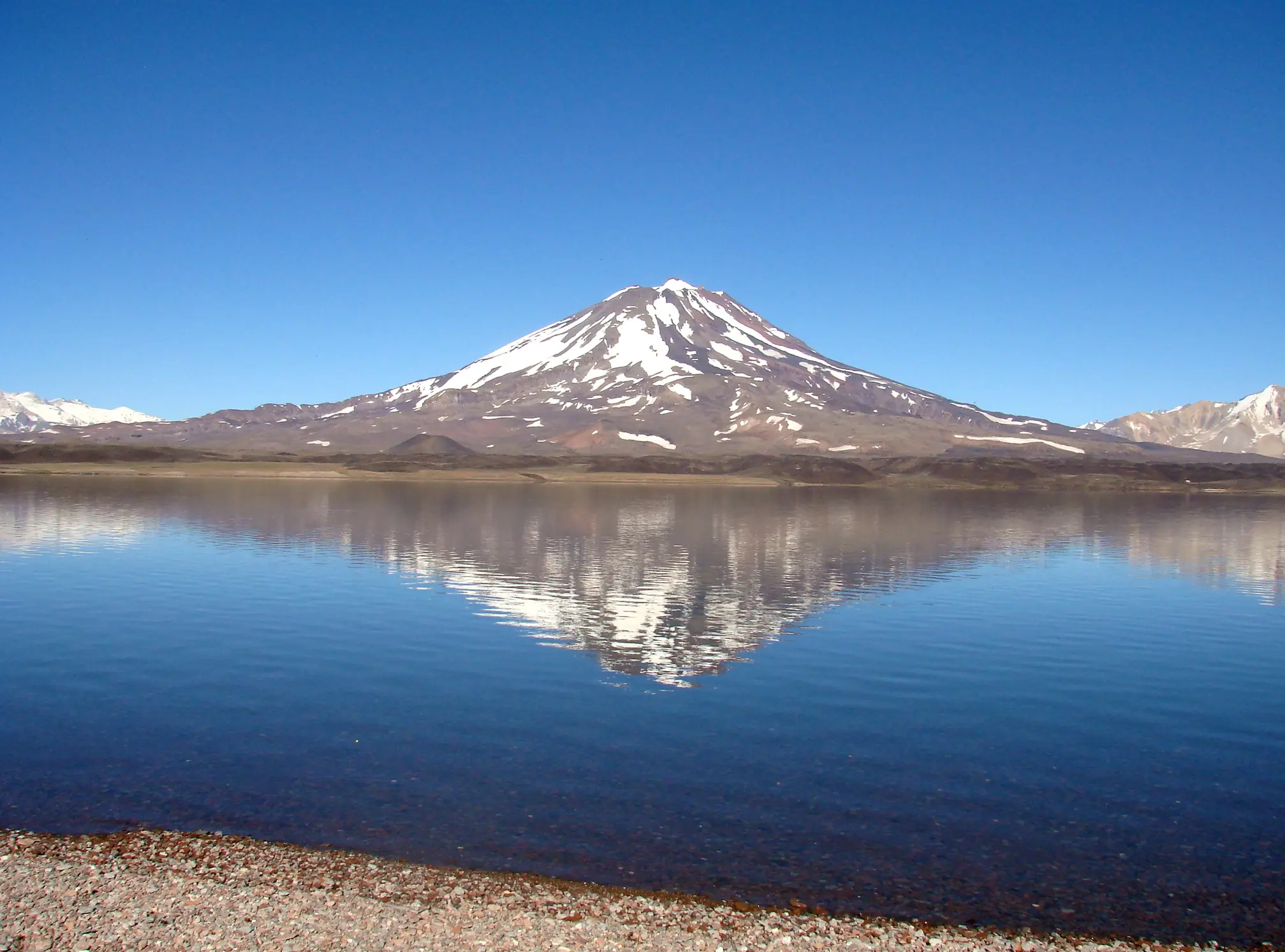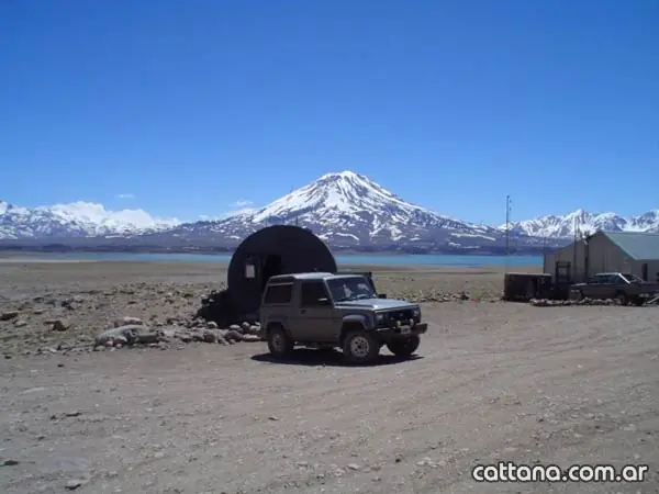 Debe su nombre a la figura romboidal del volcán Maipo reflejado en sus aguas; el paisaje, espléndido y agreste, fue descrito por Antoine de Saint-Exupéry en Viento, arena y estrellas.