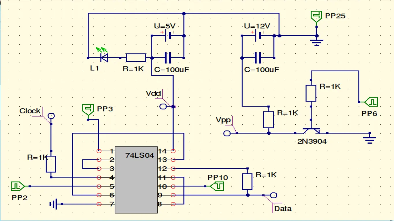 Pues ahora que sabemos cuales son los pines correspondientes a ICSP en nuestro PIC armaremos el hardware que conectará la PC con el uC (PIC) y tendrá 5 cables correspondientes con los pines de ICSP (vpp,vdd,vss,data,clock) y que conectaremos con los pines correspondientes en el uC (PIC) los cuales ya conocemos.