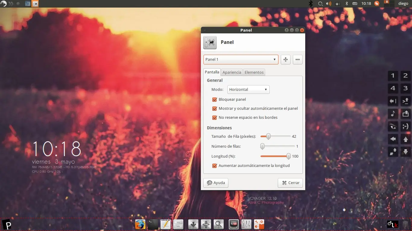 PANEL-VOYAGER: el antiguo dock de voyager ha sido sustituido por un panel xfce modificado para cumplir la misma funcion pero menor consumo de recursos