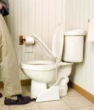 Si eres muy vago y no quieres agacharte a levantar la tapa del váter, o simplemente te gusta pisar pedales, con el levantador de la foto podrás subir la tapa pisando un simple pedal