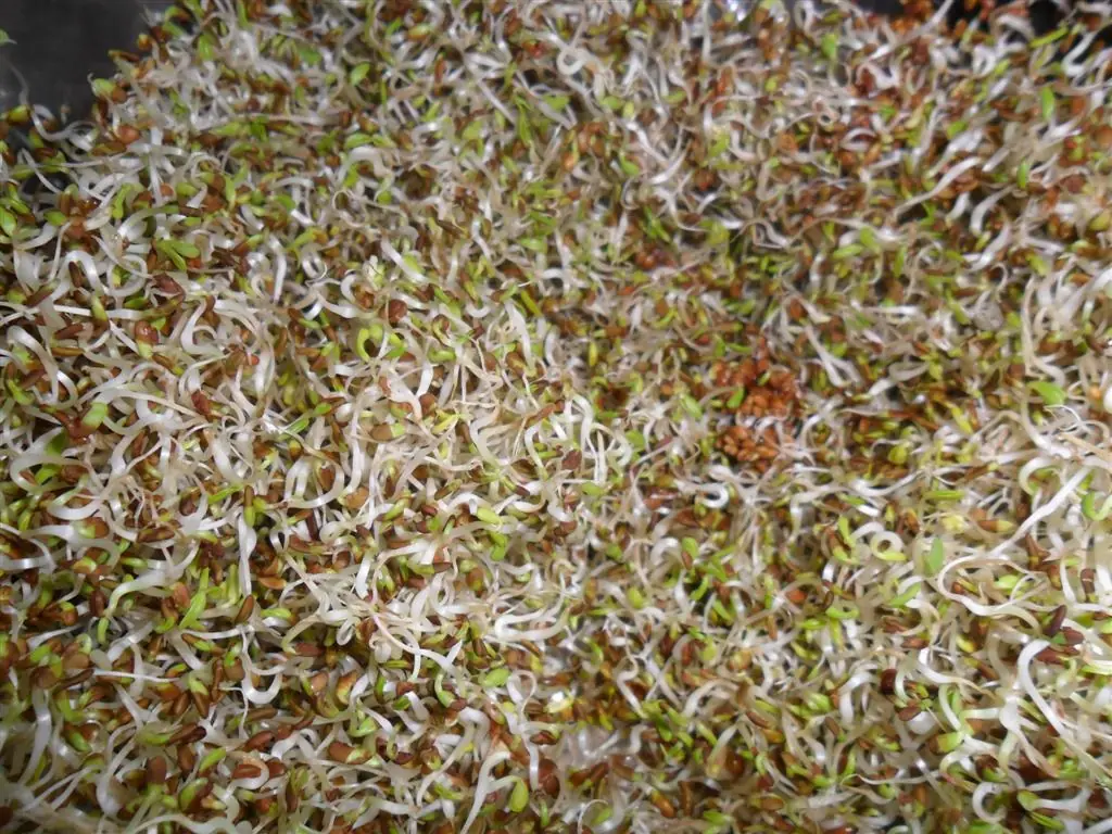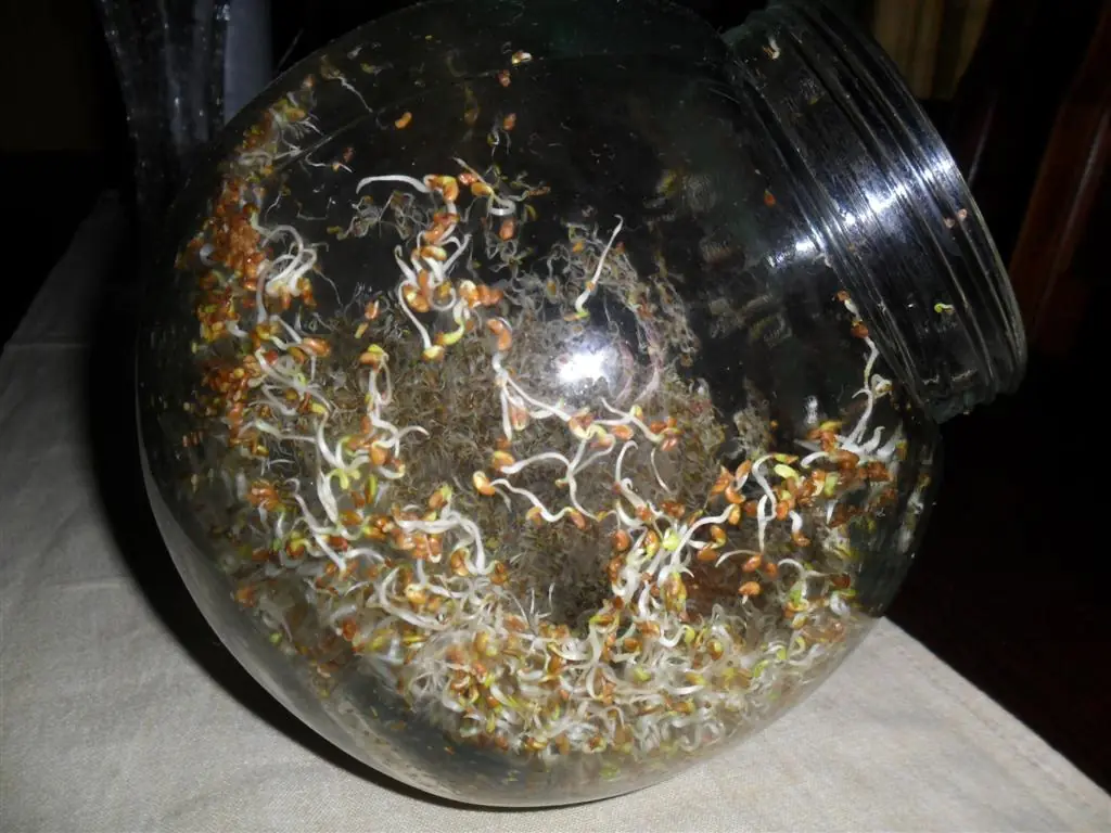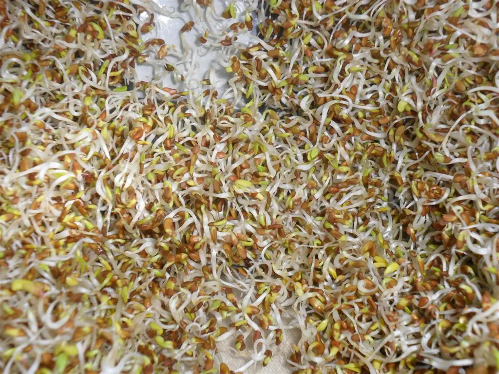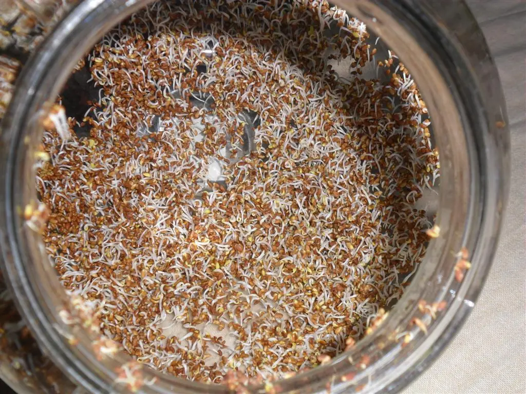 • El volumen y el contenido de agua pasa de ser de un 5 al 12% en la semilla a un 70% en el germinado ( con 3 cucharadas de semilla puede obtenerse casi un litro de brotes o germinados).