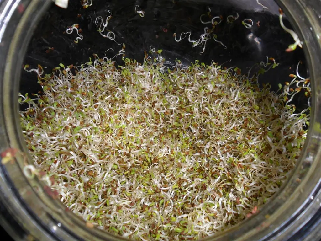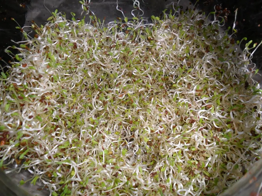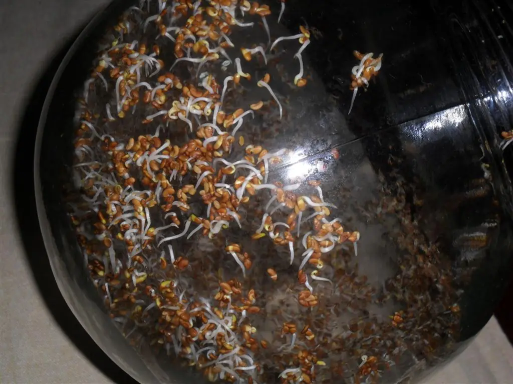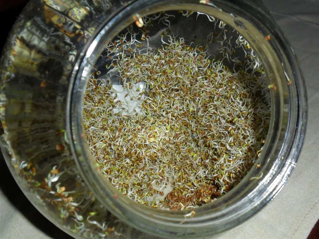 • El volumen y el contenido de agua pasa de ser de un 5 al 12% en la semilla a un 70% en el germinado ( con 3 cucharadas de semilla puede obtenerse casi un litro de brotes o germinados).