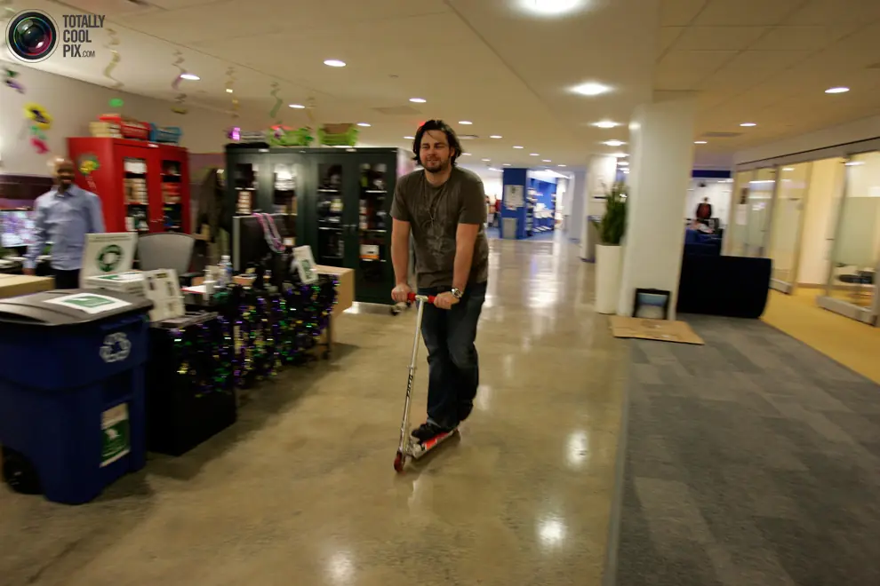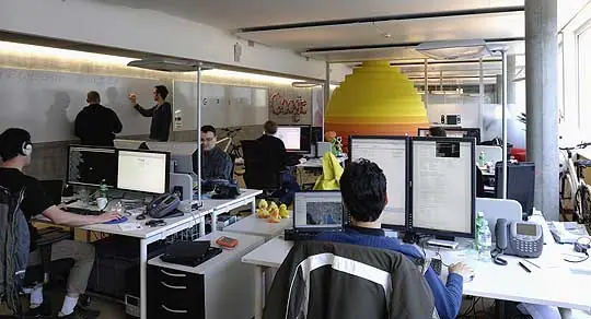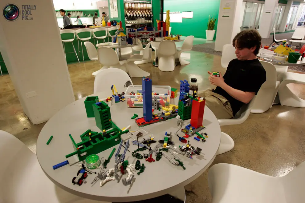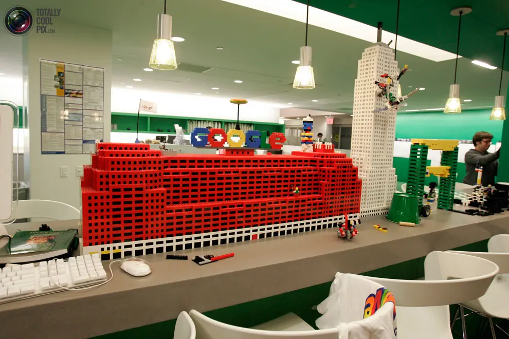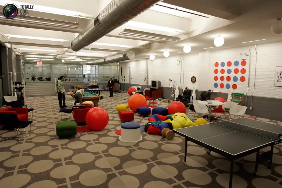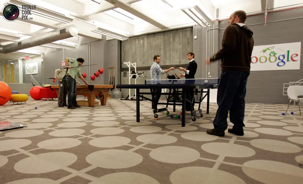 Bueno, os voy a presentar a la empresa líder de la economía mundial de nuevas tecnologías. Creo que a todos nos gustaría trabajar en un sitio así, todo de colores relajantes, buen rollo, todo sonrisas... Os presento a Google: