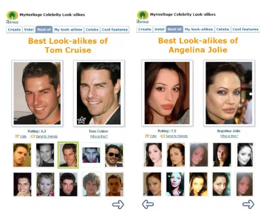 familiar,en fin de alguna persona ,y myheritage te dira a cual celebridad te pareces y en que porcentaje.