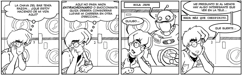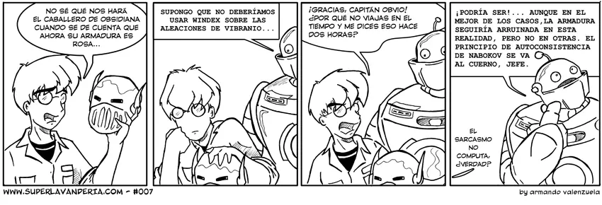 La tercera tira que presentare es Super Lavanderia (http://superlavanderia.com/) Esta divertida tira nos narra las aventuras y desventuras del unico lavandero de super heroes y super villanos de una ciudad llena de heroes y villanos. El dueño de la lavanderia es hijo de un super heroe y de una princesa extraterrestre que a diferencia de sus hermanos no heredo ningun poder y es un fracasado con las mujeres y tiene una amiga de la infancia que es una abogada terrible que siempre quizo tener super poderes, ademas de que su empleado es un robot lavadora. Esta es una gran historia y en lo personal la recomiendo mucho, como todo comic aqui posteado.