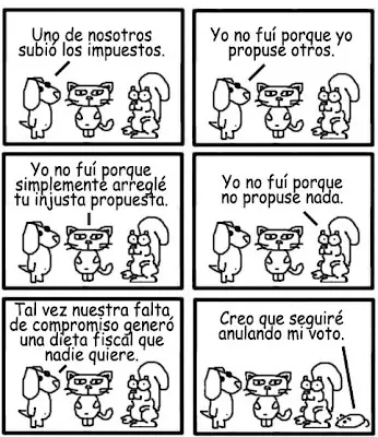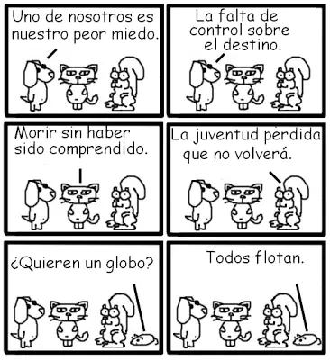 Ahora El perro el gato y la ardilla (http://perrogatoyardilla.blogspot.com/) una tira que tristemente se encuentra en receso pero que tambien ofrece una posibildad interesante: la crear tu propia historia.