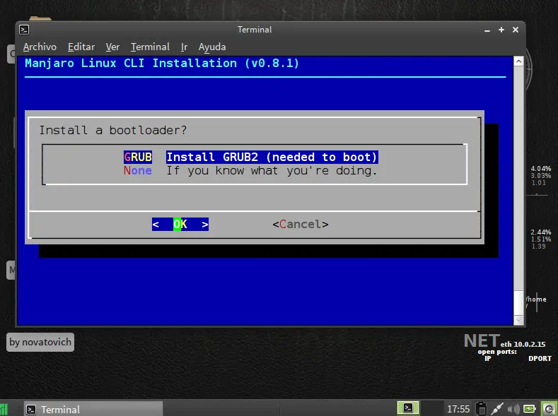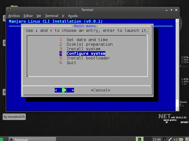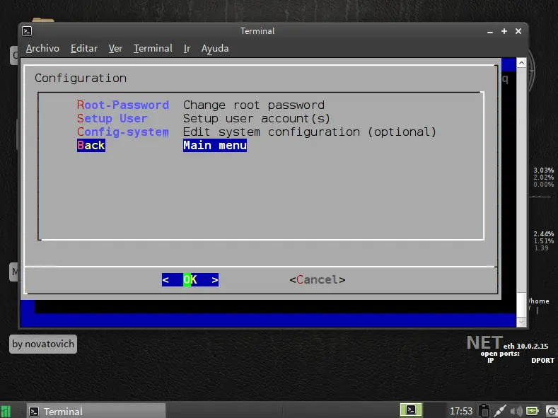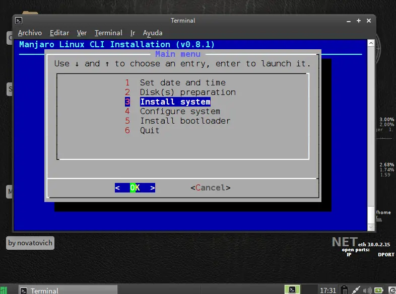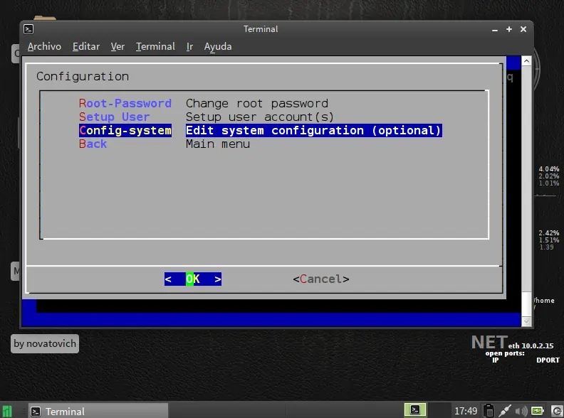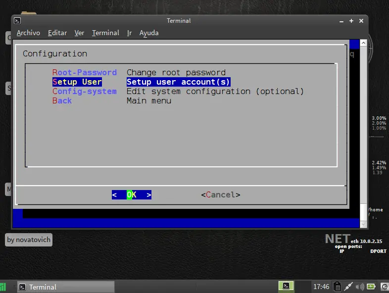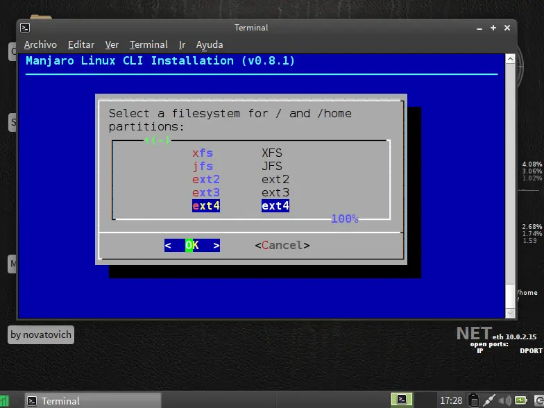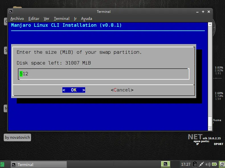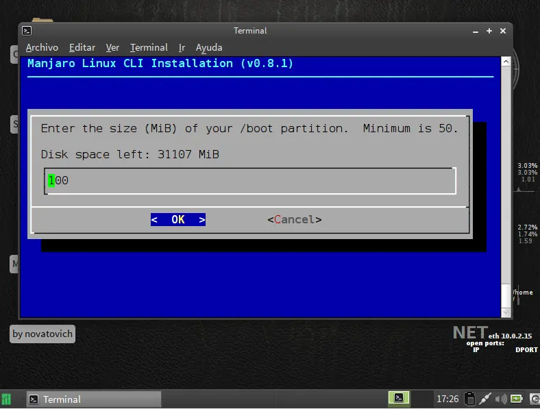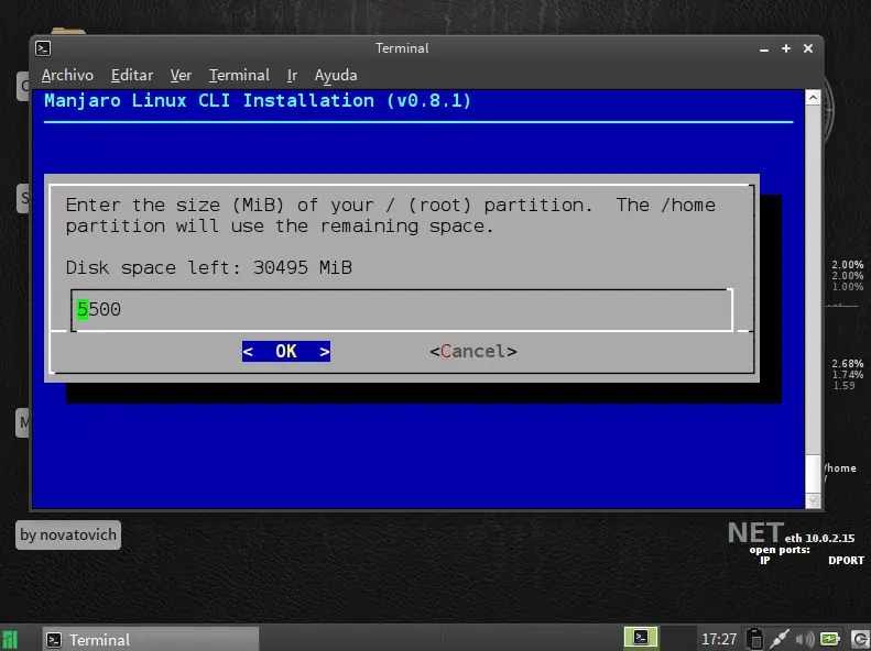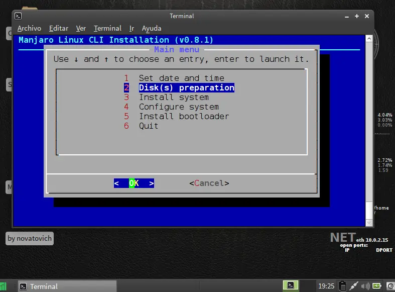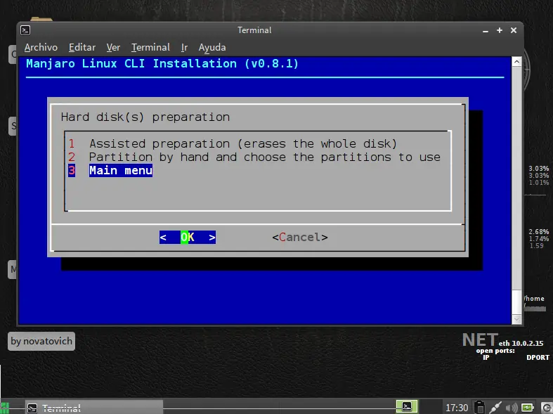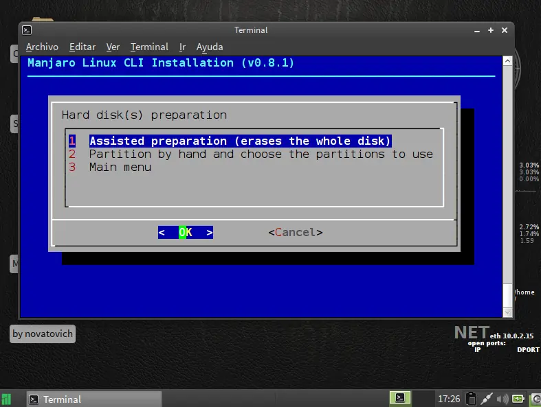 siguiente paso particionar disco use la opcion facil ya que es de forma grafica