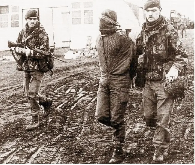 Hace no mucho tiempo se publicaba en TARINGA la siguiente foto, en donde se puede apreciar a un Soldado Argentino encapuchado tomado Prisionero por los Ingleses en las cercanías de San Carlos (Cerro Montevideo).