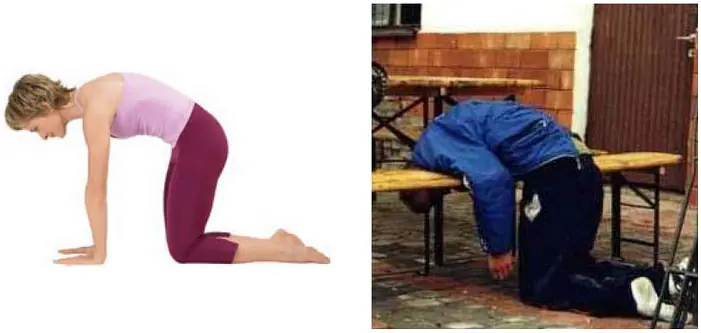 Marjaryasana: Esta posición provee un masaje gentil a la espina dorsal y los órganos del abdomen.