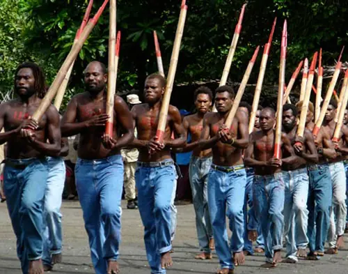 John Frum es uno de los famosos "cultos cargo" que surgieron entre las poblaciones indígenas aislados en el Pacífico Sur durante la Segunda Guerra Mundial, cuando los bárbaros vieron aterrizar aeronaves extranjeras completo de la carga y trató de poseer los bienes a través de la magia y ritual. John Frum pertenece a la isla de Tanna en Vanuatu. John Frum se representa como un militar estadounidense que apareció durante la Segunda Guerra Mundial, con la promesa de la riqueza material del mundo occidental a la tribu. Sin embargo, se alentó a la tribu para evitar todos los otros intentos de colonialismo y el cristianismo. Después de la guerra, cuando los estadounidenses partieron, los seguidores de John Frum construyen pistas de aterrizaje simbólicos para fomentar aviones estadounidenses para volver a la carga. 15 de febrero se observa como "John Frum Día" en Vanatu, cuando la gente se viste como militar estadounidense y con orgullo exhiben objetos de interés estadounidenses y las letras ". EE.UU." antropológicamente hablando, estas personas simplemente se filtraron sus primeros encuentros con tecnología de avanzada estadounidenses - que descendieron del cielo llevando una riqueza inimaginable - a través de su propio sistema de creencias: un sistema de creencias que permite dioses-entre los hombres-y el poder de la magia. Tasa de los seguidores de John Frum sólo una tuerca.