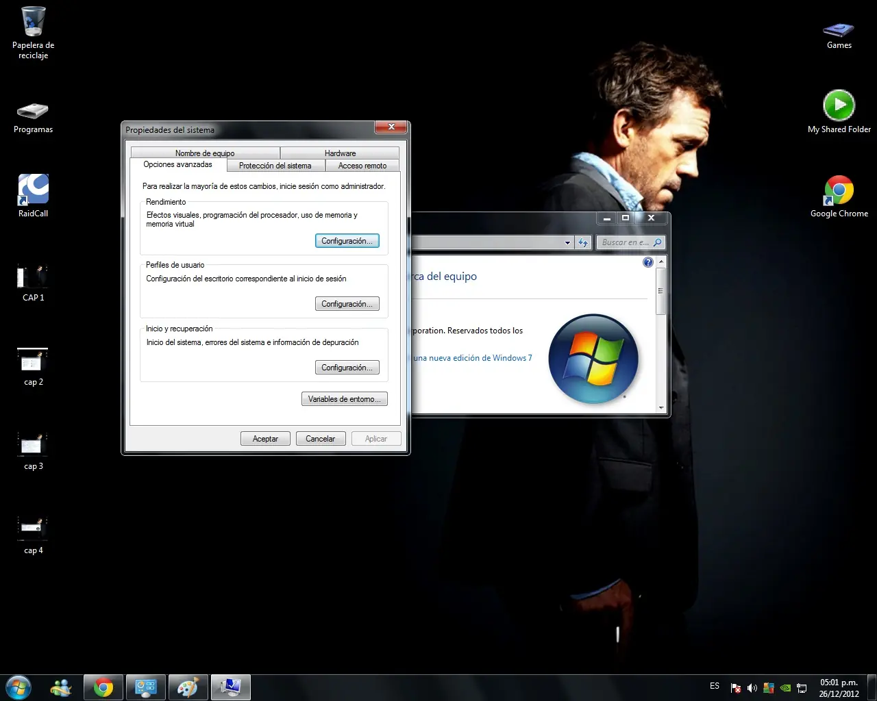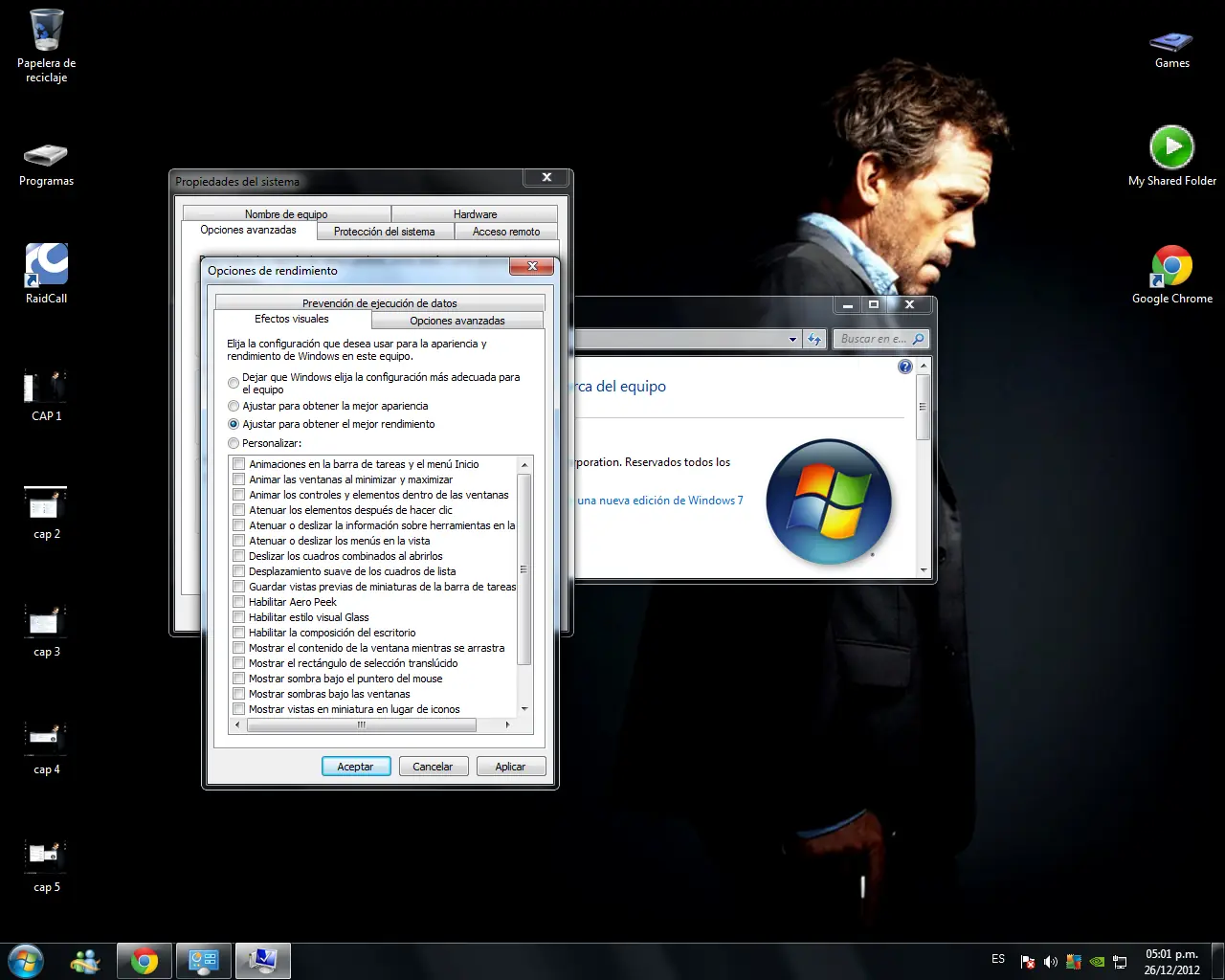 Configuracion avanzada del sistema- Rendimiento configuracion